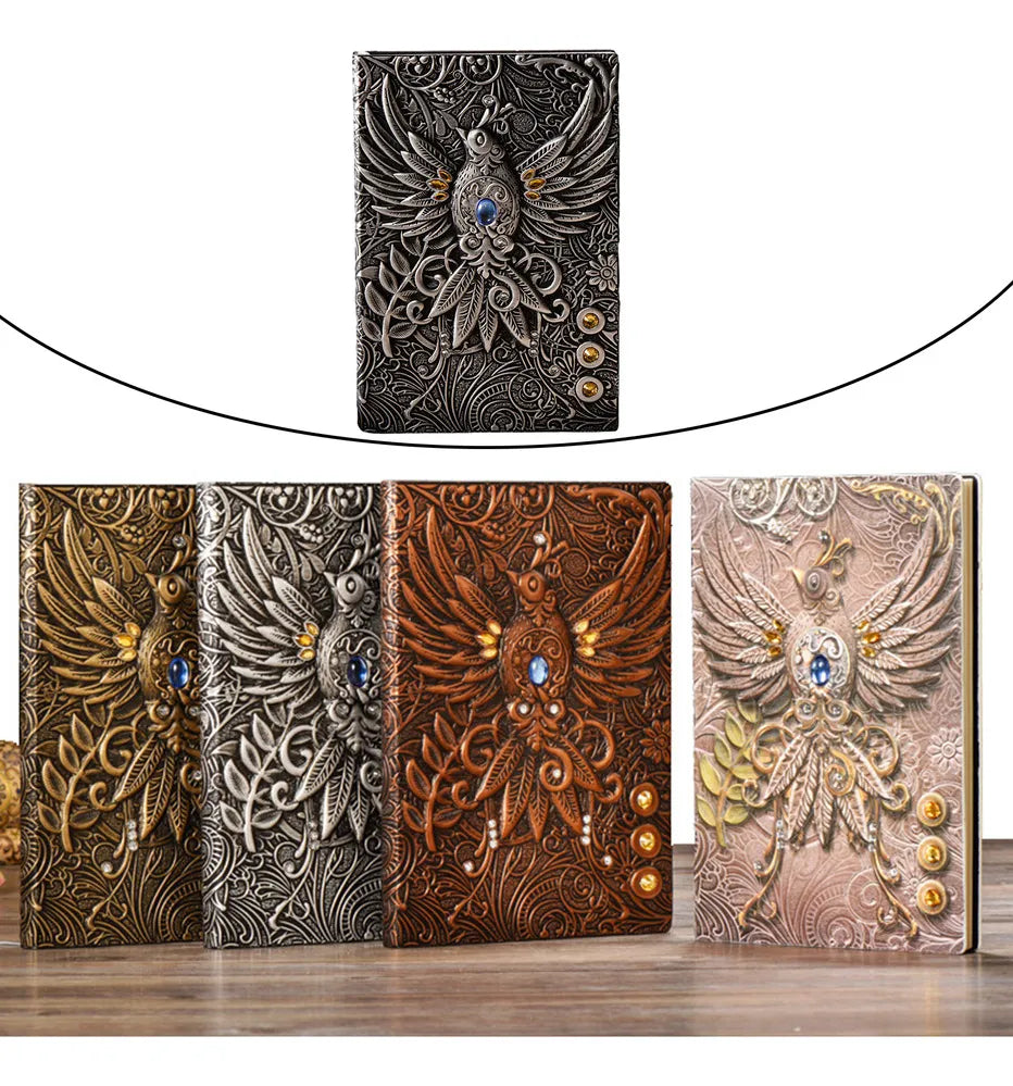 Cuaderno Vintage Relieve Fénix Con Piedras | Tapa Dura Artística